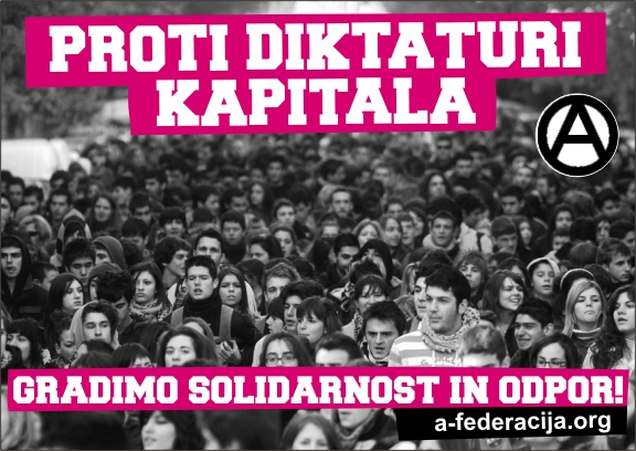 Konec politike zategovanja pasov, ki prinaša opustošenje za nas in dobičke za njih! Za nas ni razlike ali nad njimi gospoduje trojka, ki šele prihaja, ali pajaci, ki so že tu. Ne pristajamo na recikliranje neoliberalnih receptov, niti na kozmetične popravke sistema, kjer ima peščica veliko, večina pa nič. Zato se borimo za temeljne družbene spremembe in gradimo alternativne strukture od spodaj!